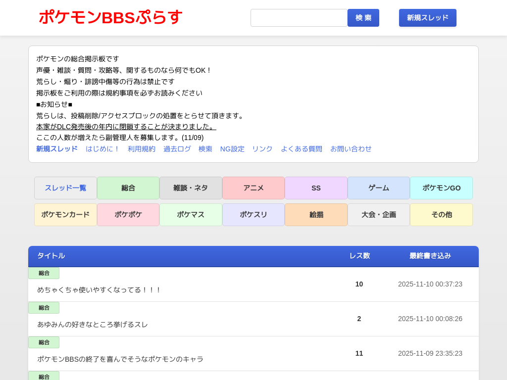 ポケモンBBSぷらすはポケットモンスターの総合掲示板です